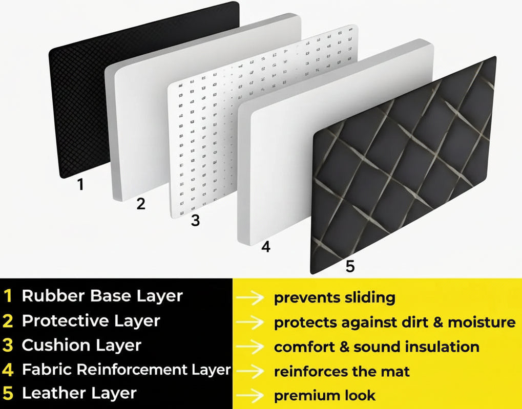 Every mat is made specifically for your car and precisely tailored to match its contours. We manufacture based on accurate vehicle data — for a secure, exact fit that stays in place without slipping.